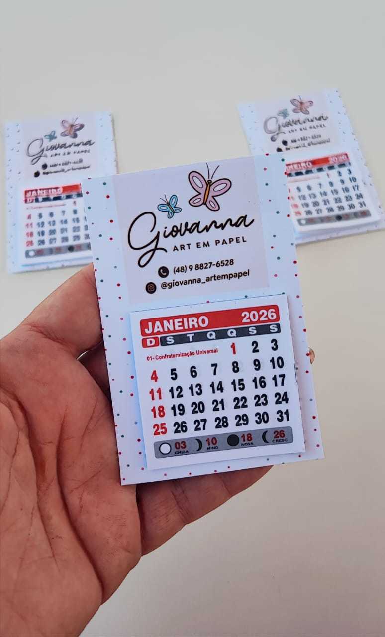 Calendários 2026 20/Novembro/2025 Mini calendário de geladeira 4 visualizações 0 curtidas R$ 3,25 Comprar